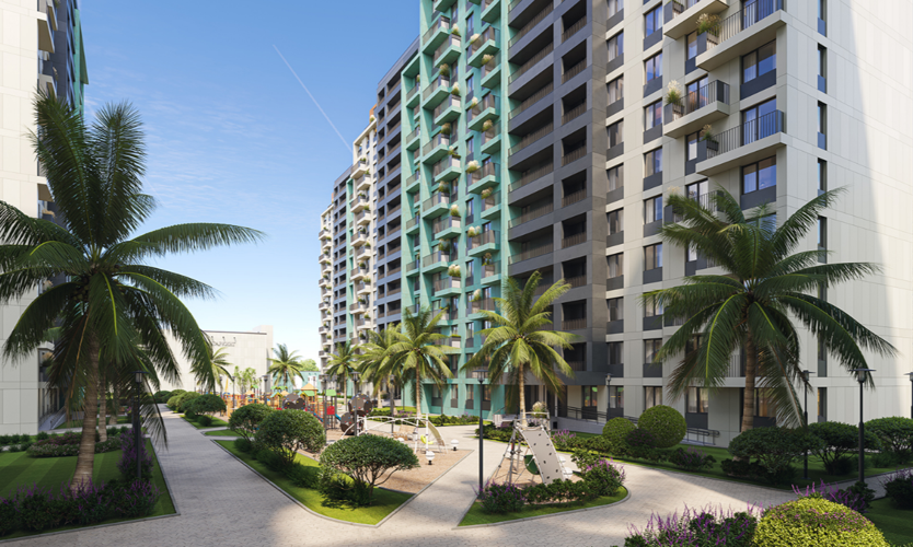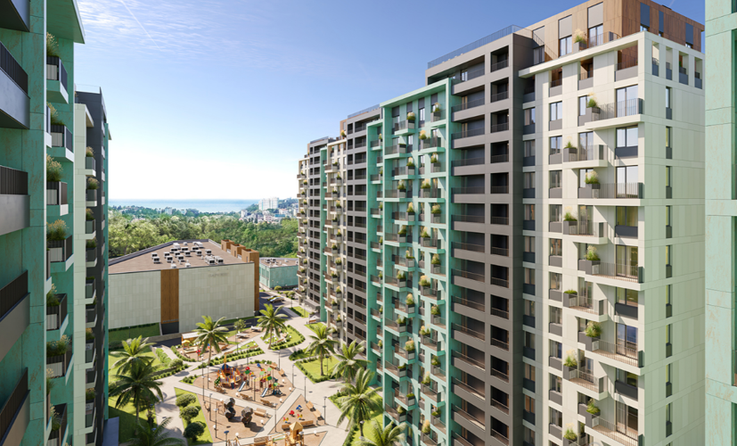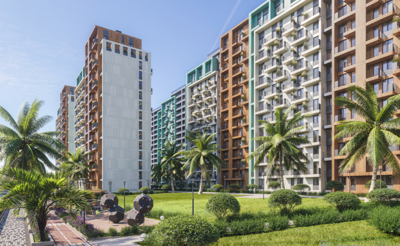 Современный жилой комплекс из восьми 15–16-этажных корпусов в пгт. Дагомыс. Ключевая особенность — панорамные виды из окон на Черное море, реку Восточный Дагомыс и чайные плантации.